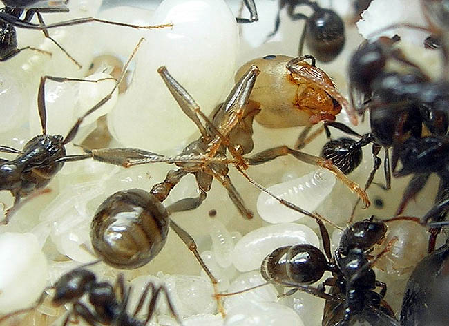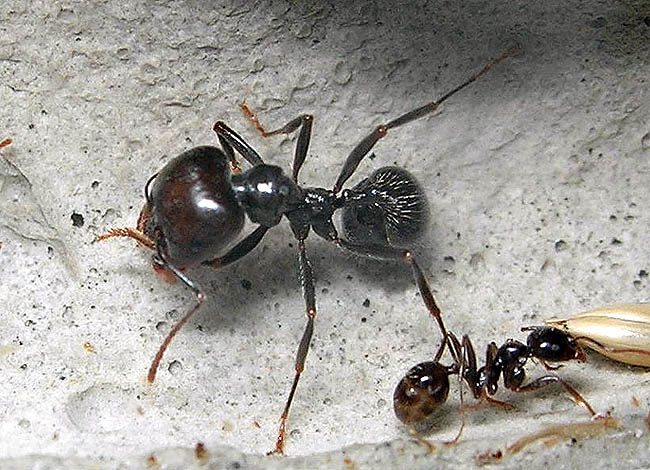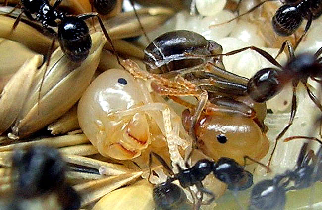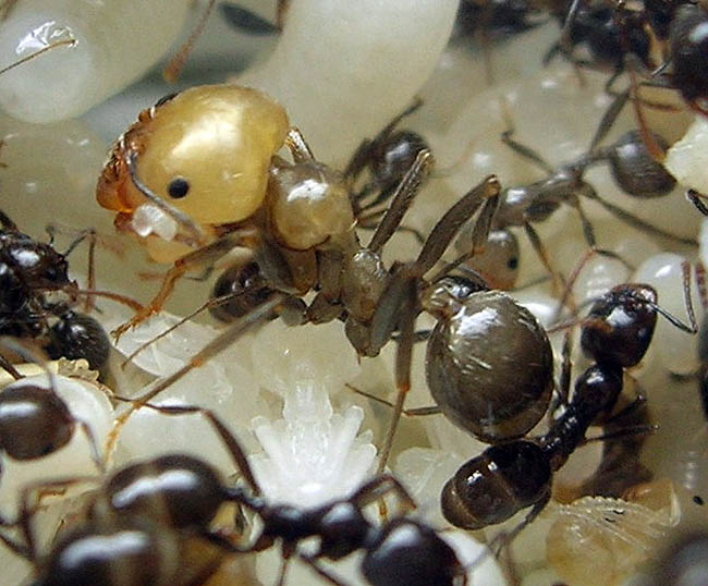 Сегодня удалось подсмотреть "рождение" первого крупного "Солдата" в колонии Messora Barbarusа. Не знаю, будут ли более крупные особи, но размеры этого "Солдатика" тоже впечатляют. Конечно он еще светленький и беспомощный, но думаю через несколько дней потемнеет, и от собратьев, будет отличаться только размерами. Заметил, что Barbarus-ы темнеют значительно быстрее, чем Messor denticulatus. Эти довольно долго разгуливают в "детской" раскраске. Пробирка становиться маленькой для разрастающейся колонии - подумываю о переселении в формикарий.