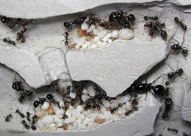 Все остальное перед Вами. Быстро это или нет, не знаю, я новичок в этом деле :) Сейчас колония занимает обе стороны формикария, и точно пересчитать их, я уже не могу, да и смысла нет. Выложил фото и назвал приблизительные цифры - Вам виднее. Могу сказать точно, что в январе их было пятьдесят... Кстати, Denticulatus-ы развиваются примерно так же, их я тоже взял в январе в количестве 11 шт. фото сделаю чуть позже.