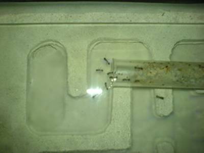 вот ешё что было замечено после того как гипс увлажнить через некоторое время некоторые муравьи начинают брюшком постукивать по полу