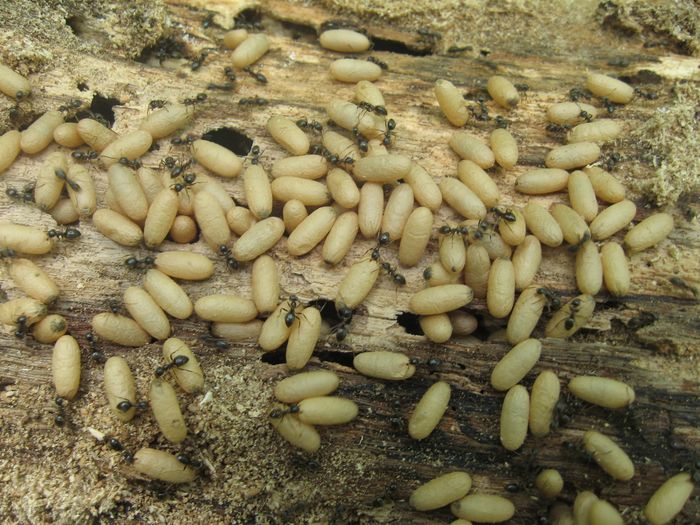 В какой-то из прошлых годов поднял на даче старый кусок фанеры или пластика (не помню, что это было точно) и под ним нашел сразу три гнезда трех разных видов. Располагались впритык друг к другу. Когда поднял, конечно же многие перемешались и и началась паника, но расплод явно указывал, где чей муравейник.
