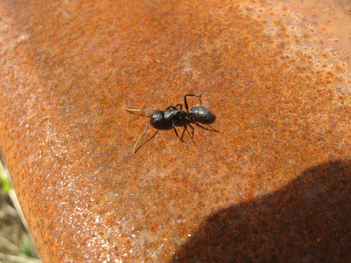 Во время этих баталий внезапно на територии появился гигантский мураха. Он осторожно пробежался между враждующимися сторонами и быстро скрылся из виду. Это был Camponotus fallax, гнездо которых также находится где-то недалеко от того места. Всё думал, когда же они проснутся)