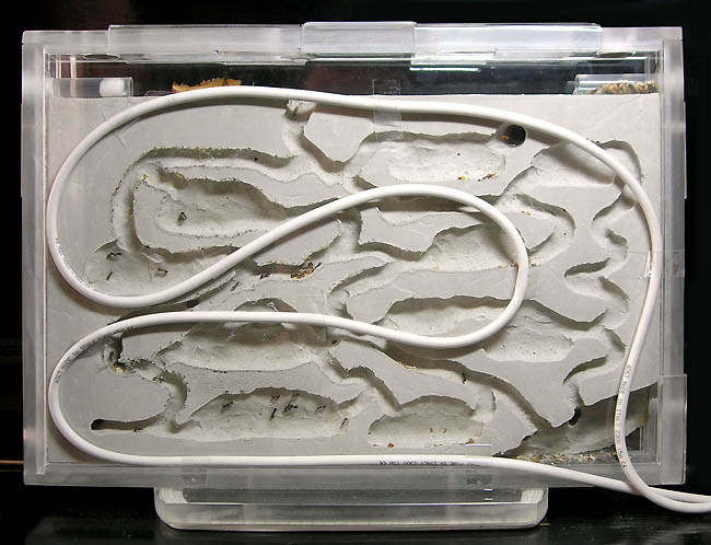 Не знаю, "будем посмотреть" :) Матку уже давно не видел, но скорее всего, для нее выгрызли камеру в районе канала для увлажнения. Внешне это почти не заметно, но внушительные кучки гипсовой крошки у нижних вентиляционных отверстий, тому подтверждение.
