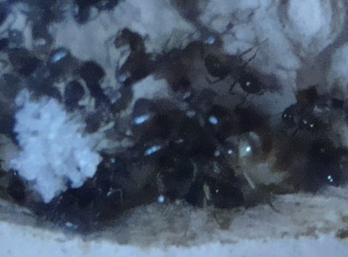 Самку целиком сложно заснять-прячится за яйцами или рабочими