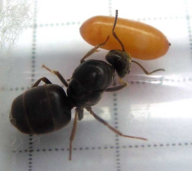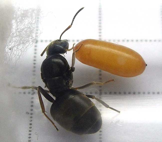 ого! явление видимо не такое уж и редкое как думалось изначально.. Значит "муха" паразитирует на матках лазиуса.. Возможно что и на матках других видов.. Формика, сервиформика, примерно того же размера, плюс-минус.. У меня вот какие вопросы возникают.. Чем питается личинка? По идее должна есть изнутри матку.. Откуда вылазит? Не выходит же она наружу из яйцепровода, может вылазит через отверстие между сегментами абдомена? Почему матка жива еще? Личинка, куколка значительных размеров, это сколько она выела внутри матки и та еще жива..