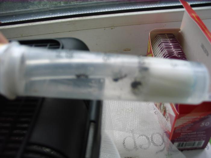 Из этого. Их было 3. Одна умерла, помялась при поимке, другая немного утопленная была, но ожила, сидит видимо внутри контейнера со всеми . А 3тья в шприце.
