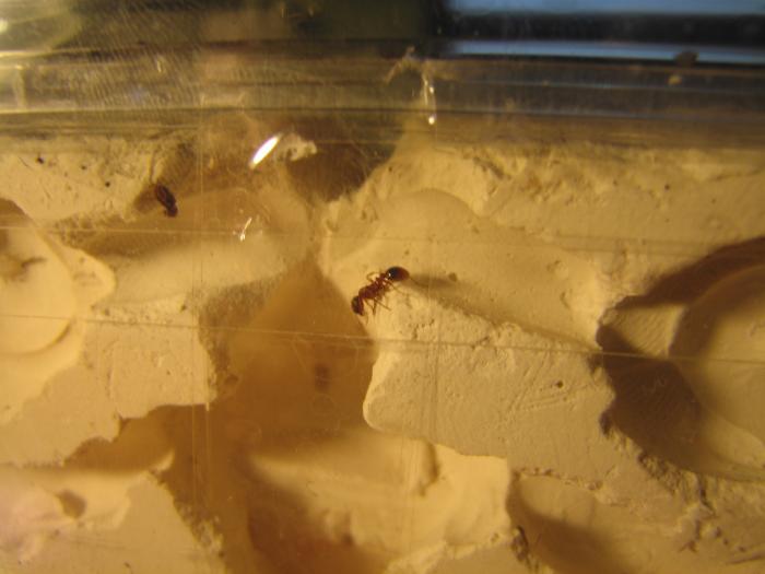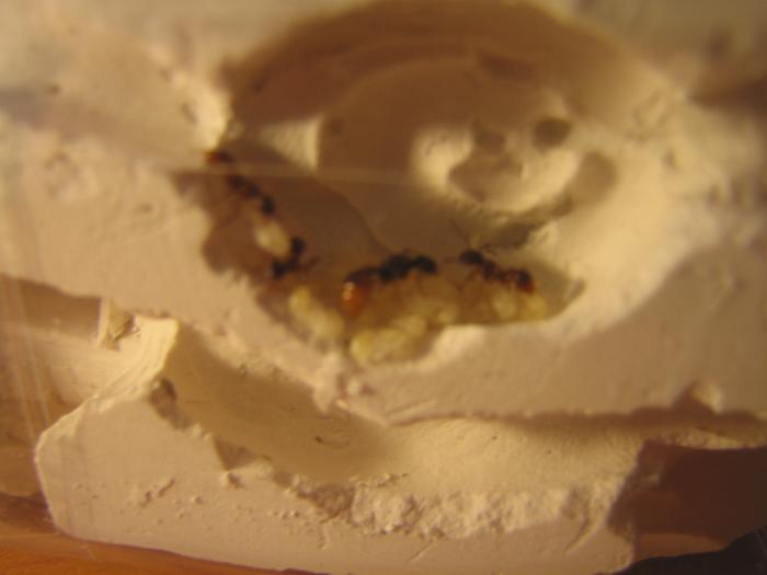 Когда их там будет десятков 5, открывать крышку будет чревато массовыми побегами. Увлажнение пшиками мне не нравится - но это дело хазяячее. Повторюсь - мирмикам нужна высокая и стабильная влажность - следи. А фотку я матки просил - покрупнее.