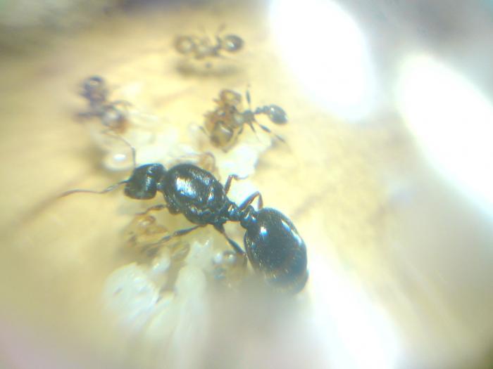 Вот прошли дни с момента первого лёта четырёх видов. Как вы уже знаете, нигеру я подкинул коканы (тому нигеру, которому рабочих неподкидовал) уже родилось 4 мурахи, двое уже потемнели, пятый на подходе, плюс я ещё коканов взял, с лесного муравейника. И у матки уже личинки, яйца.