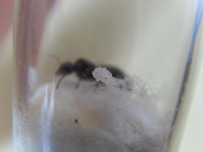 Приветствую Вас уважаемые любители муравьёв. Я в этом деле новичок и не стал бы заниматься чем либо подобным, если бы не мой друг. Он давненько разводит муравьёв таким образом и предложил мне попробовать. Я ради интереса решил заняться "муравьиной фермой" Поймал матку и по всем правилам посадил её в пробирку с водой для влажности и в тёплое место. Через примерно 4 дня она отложила яйцЫ :) Прошу подскажите что это за вид муравья и как долго ждать первых рабочих???