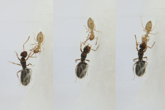 а этот светленьккй, это молодой муравей? он уже неделю такой и никак не темнеет, есть еще несколько светлых в основной семье. могут быть смешанные муравейники?