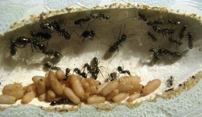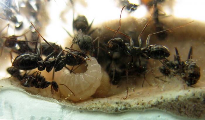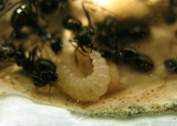 Перед тем как накормить, муравей обязательно пощекочет личинке животик, наверное для лучшего пищеварения :)