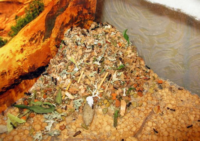 общий вид формика, в зависимости от температуры и их настроения, большая часть может либо в большинстве уйти в верхнюю не обогреваемую часть либо рассредоточиться по всему формику. (Увлажняется правая часть)