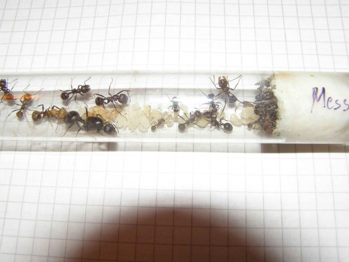 Мои "малыши" конкретно подросли и я решил сделать себе формик по приличнее, такой маленький кусочек природы. Переселились ребята очень быстро (за сутки). Под старый форм я положил термоковрик, новый затемнил и вуаля. Новый формик сделан из маленького аквариума на 10 литров. Вывелись мега солдаты, чуть чуть меньше матки. Кусаются не больно. Где то писали, что у мессоров есть жало, так вот даже когда я держал солдатика пальцами, он только жевал меня мандибулами и все. Никакого жала ?!