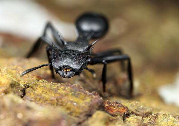 Типичные для Myrmecia челюсти у хорошо развитые глаза. Мандибулы открываются на 270°.
