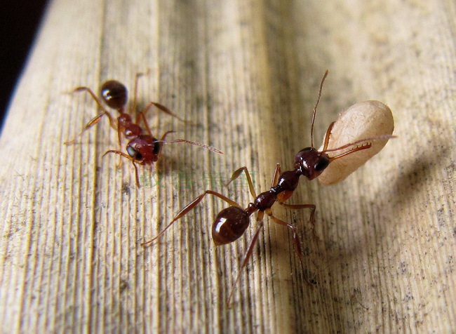 Если же рабами станут серые песчаные муравьи, то те, при возвращение амазонок с добычей, сами пытаются выхватить у них украденные коконы, чтобы помочь и втащить в гнездо. Поскольку амазонки не отдают завоеванное кровью, то рабы их силком втягивают внутрь гнезда. Опять столпотворение. Но постепенно, через несколько походов, все обучаются и амазонки уже сразу передают коконы "из рук в руки" своим рабам.