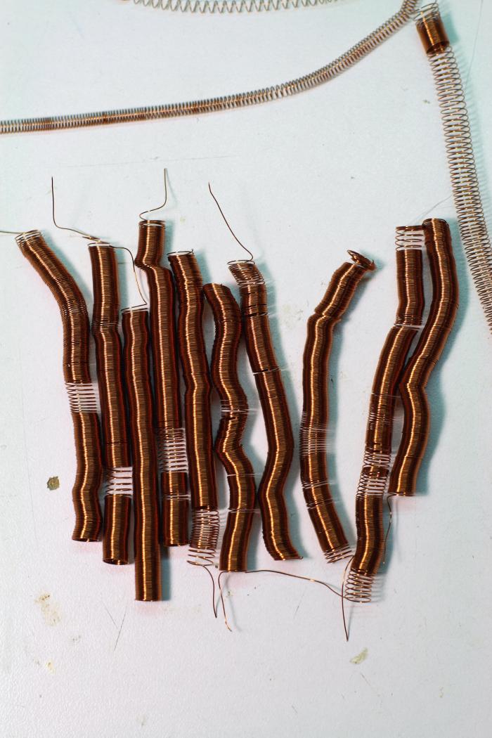 Медные провода , находясь даже в лаке , но не заизолированные в местах пайки , под напряжение начинают растворяться - данный эфект называется электролизом. После того делать форм меньших размеров одно удовольствие.