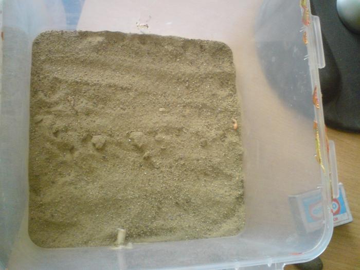 Сегодня 29 марта я наконец-то застал этих насекомых у их гнезда,взял я 6 особей , до этого не видел их в больших количествах, только по 1-2 особи и то ели шевелились:). Поселил в пластиковый контейнер, который раньше был ареной у нигеров, но так как их мало и они туда не ходят, дал им ёмкость поменьше,