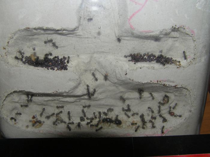 В формике НЕТ сухих камер похоже. Или он немного переувлажнен. Вот они и спасают семена в сухой трубке. Я когда аренариусов переселил в новый форм, они сначала все камеры забили семенами под завязку, а затем вытаскивали их обратно, ибо я с влагой переборщил. Подрощенные и заплесневелые семена выкинули на помойку. Ебенинусы же у меня внутри форма семена и не хранят. Хранят в трубке, недалеко от выхода на аренку.
