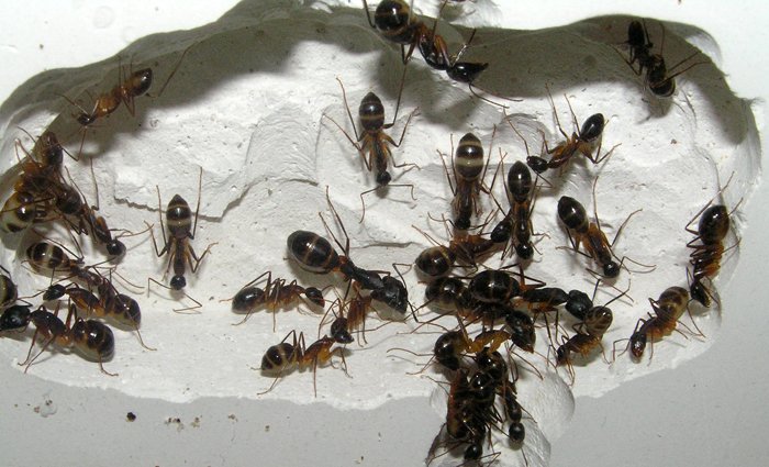 Колония живёт отлично! обитает в пробирке с ареной ,питается тараканом и сиропом ,колония заметно выросла щяс много расплода и 24 рабочих на арене постоянно дежурит минимум 5 рабочих ,успел сделать только фото обглодонного таркана(съели его за 3 часа!) ,А на остальное нехватило батареи ,когда куплю новые батарейки обязательно дополню
