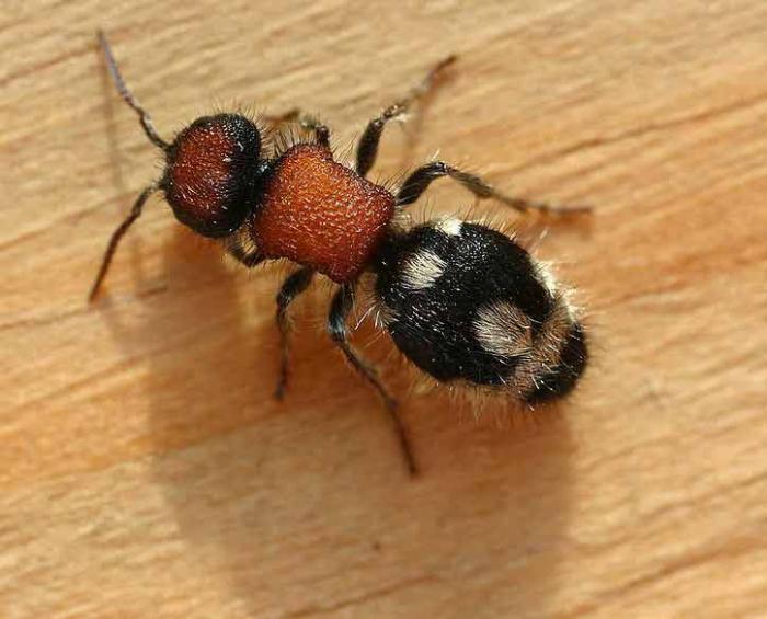 "Бархатные муравьи - вид одиноких ос-охотников. Бескрылые самки покрыты густым мягким мехом и напоминают внешне муравьев. Самцы больше похожи на ос, у них полностью развиты крылья, а на черном брюшке имеются красные или желтые полосы. Взрослые особи питаются нектаром, а вот личинки поедают детенышей других ос и пчел. Самка проникает в гнездо насекомого-хозяина и откладывает яйцо на взрослую личинку. Личинка немки поедает личинку хозяина и окукливается в се ячейке. У самки немки мощный яйцеклад и, как утверждают фермеры, способен убить домашнее животное, поэтому их называют еще муравьями-убийцами коров."