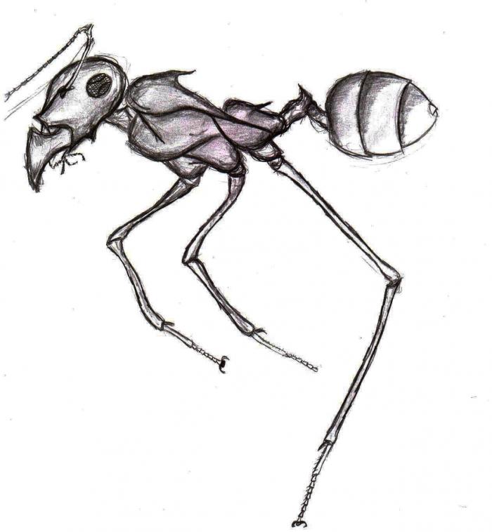 Вчера произошла интересная история. Читал эту тему и рассказывал супруге про конкурс, пока я трепался и тырился в монитор за моей спиной кипела работа. И секунд через 30 со словами "Говоришь фантастических муравьёв?..." протягивает два листочка бумаги с нарисованными картинками :)