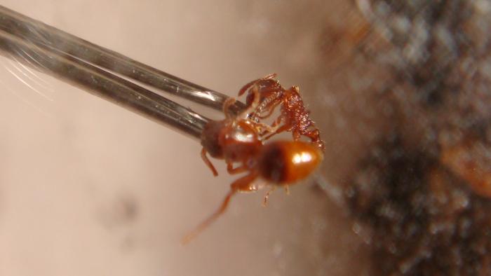 Дело было вечером делать было нечего , значит сжу я себе занимаюсь делами и решыл посмотреть на своих мирмик , смотрю себе смотрю , и бац чтото непонятное светло рыжее пробежало по куколке матке!! Я сначала подумал что просто спать хочется и глючит под ночь меня))) но через нескольк чекунд ещёра пробижало перед стеклом, и главное шустро бегавли, я давай смотреть, смотрю себе смотрю и ещё меньшее создание белого цвета по гипсу ползёт(не быстро) и бац снова рыженький пробегает , а я не долго думая зашол на сайт антклуба и давай паниковать))