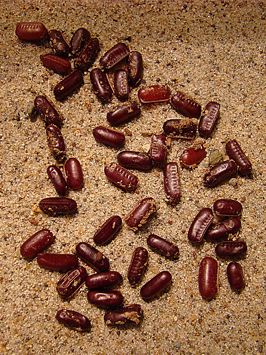 А вот что заметил, у них в террариуме стоят 4 кормушки гамарус, отруби , фрукты, и семена мака, подсолнуха и тыквы, так вот больше всего их собирается около кормушки с семенами, а не с гамарусом...