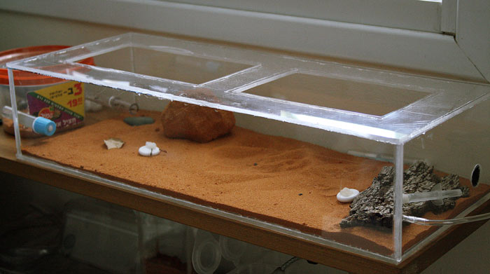 Если кремы плохо ходят по песку, можно насыпать мелких камешков. Даже не везде, а хотя бы только где крематогастеры.