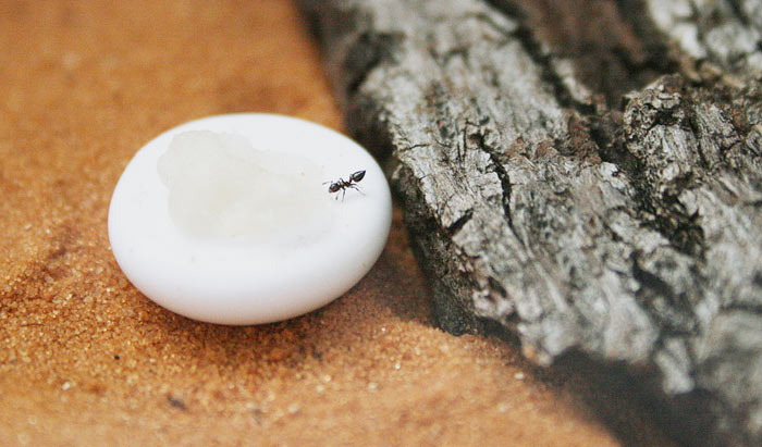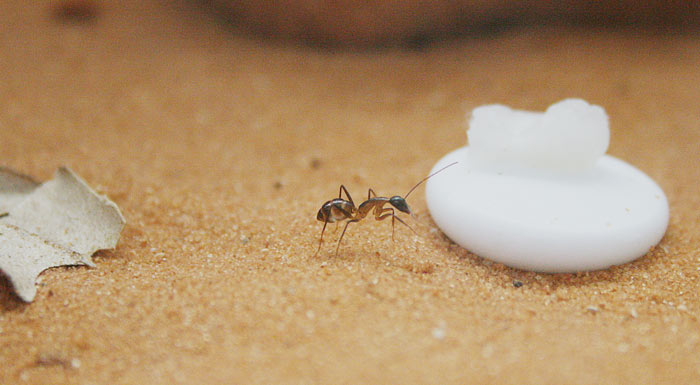 маленькая пробирка внутри - молодая семья крематогастеров, пытаюсь совместить два вида на одной арене. подумала, что пока обе семьи маленькие и трусливые, они могут друг к дружке привыкнуть. но на деле кремы пока из пробирки не выходят, приходится их кормить отдельно у самого входа.