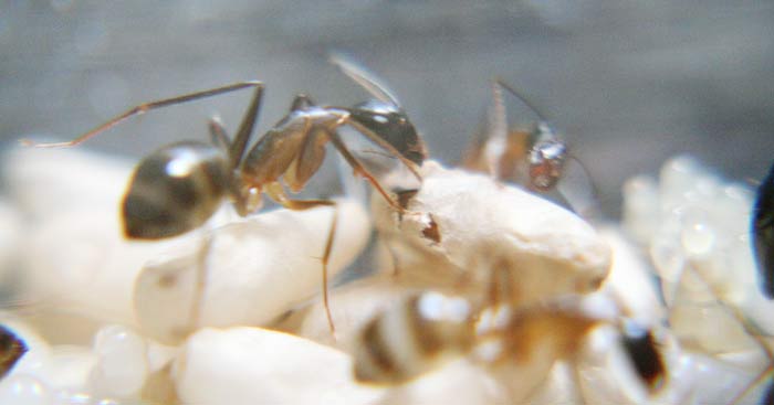 один из первых, самых маленьких рабочих кампонотусов каким-то образом заполз к крематогастерам в трубочку, там его убили и втащили в пробирку, сейчас разбирают на запчасти.