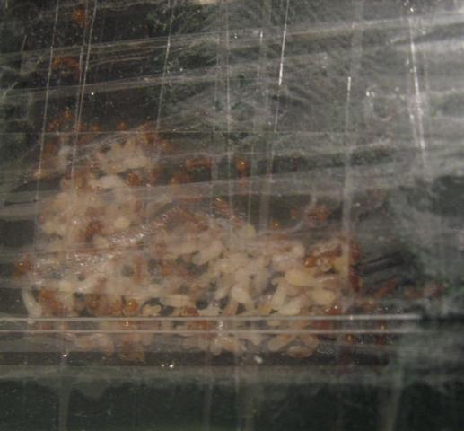 Уже примерно 2 месяца в колонии муравьев не наблюдается ни одной куколки. Только личинки. Кроме того, время от времени муравьи выкидывают на арену или помойку упитанных личинок. Насчет причин такого поведения и отношения к собственным личинкам я могу только гадать.