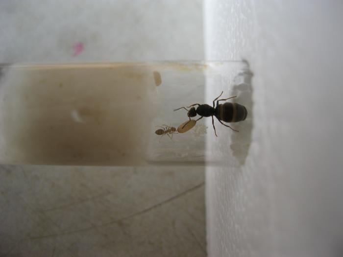 Ну что господа....:)Из тех коконов что я подбросил, сегодня сутра вылупился малыш:)такой маленький......:)Мне кажется что это я подбросил коконы флавуса, потому что малыш такой желтенький......и если его матка приняла значит что ???-матка Флавус???
