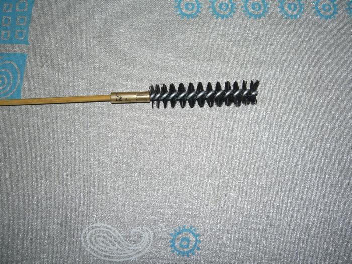 Выход нужен ёршик, а где взять такой нужного диаметра. Вот и вспомнил как то заходил в охотничий магазин там были насадки для шомполов.Ну сегодня и помчался ,к сожалению капроновых нужного диаметра не было , пришлось взять чуть меньший.
