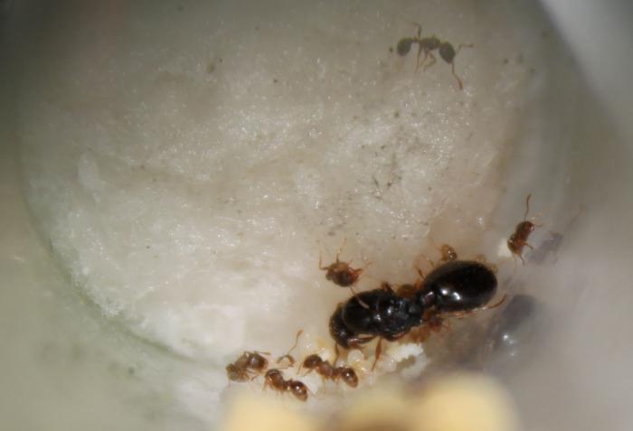 поймал в крыму матку тетрамориумов (предположительно - позже выложу фото), спустя месяц в пробирке бегает десяток рабочих. пробовал их кормить следующим