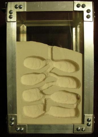 3. Ясно что это формикарий не для первого заселения. И заселять его по большому счёту желательно при населении голов около 200, но если очень нетерпится то можно и поморочиться с перегородками которые муравьи прогрызут при увеличении населения, или заткнуть первый переход ваткой на леске которую потом попытаться вытащить, стараясь не повредить жильцов. Можно же в проход подожить шарик подшипника который будет близок к диаметру перехода но не сидеть плотно )учитывая расширение гипса) а потом этот шарик изъять при помощи магнита.