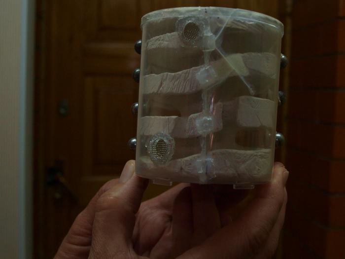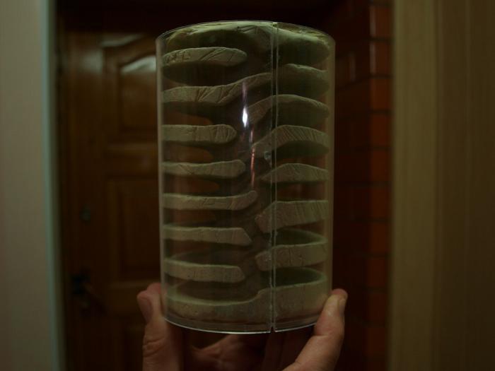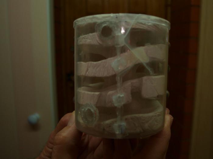 По порядку. Сегодня добавить новых фото не получится-те, что в наличии в папке не в тему, а нужные, новые друг со своей зеркалкой не сделал ещё.-Сам не люблю "голых" текстов без фото-видео сопровождения. Комментирую фото 3 формиков-цилиндров (рабочий, готовый только самый маленький, а те 2 только как примеры для наглядности). Доставания Жорика и Торбы (если напутал что с авторством-сразу прошу прощения и поправьте меня!) о том, что муравьи используют "только горизонтальные поверхности"и что "только хорошая вентиляция"-залог успешного противостояния плесени настолько "въелись")))) в меня, что породили идею формика-серпантина(как современные многоярусные гаражи в домах). В середине (забыл сделать снимок сверху!) в несущем стебле 3 шахты сквозные сверху до низу(диаметр-карандаш): вставлю ватные турунды, смачивать их буду бледно-голубым р-ром медного купороса на дистиллированной(свободно в аптеке, где есть "ручной отдел"продаётся) воде и открывать-закрывать пробки в шахтах. Думаю греть сверху лампочкой, иначе-"всё в тумане будет."Шарики 3 и 4 соответственно с двух боков формикария посаженные на пластилиноподобную резину-герметик закрывают тенические отверстия для доступа в любую камеру в любое время щёточкой или эксгаустером. Об обитателях завтра. Но не терпится сказать огромное спасибо Юрию (the5mankey) за "амазонок," ant-S.T.A.L.K.E.R и Lexist за содействие и всемерную помощь в доставке. Спасибо ребята:)))))