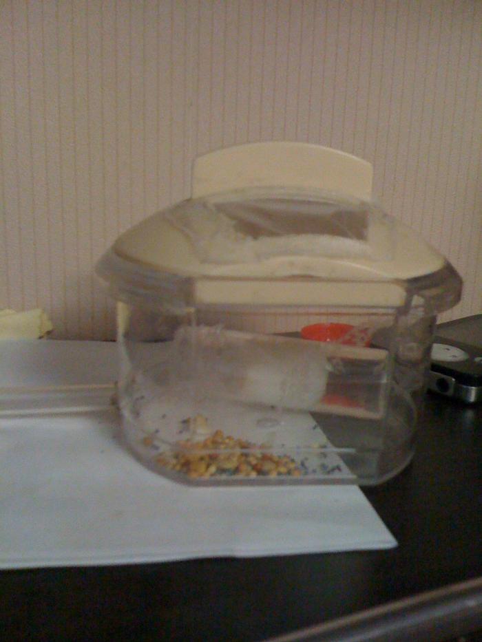 Большая кучка мака и пара зерен просо. (Это меня очень порадовало, т.к. до этого они отказывались от еды вообще!)