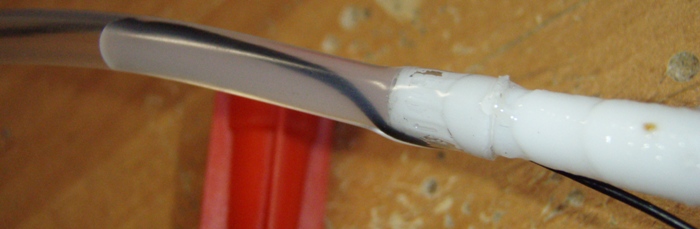 Противоположный, сфотографированному выше конец трубочки надеваем на наконечник тубы с силиконом, и НЕСПЕША!!!, сильно удерживая трубочку на наконечнике, заполняем ее силиконом...