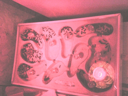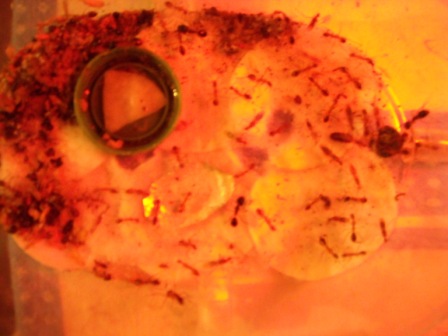 Объединить семьи вагусов не получилось: солдаты теперь постоянно на входе "дежурят"и ни о каких "дружеских контактах" и речи не может быть. Зато у макулатусов теперь 4 вагусёнка, но когда не заглянешь то какой-нибудь рабочий-макулатус тягает за усы (почти всегда именно за них) вагусёнка, а те в свою очередь всем телом подпрыгивают как-то конвульсивно. Хотя бы не сожрали "черномазиков"и на том спасибо. Посмотрю что будет когда вагусят ещё прибудет(из куколок). Из принципа бы ещё полста куколок (да солдат ещё!) им подкинул.И конечно 2 раза в день даю макулатусам мушиных личинок, вынутых из оболочки. А пока ваусиные колонии по новым формикам расселяю. Даже старый Никитин форм использовал после того как усыпив СО2 колонию в большой форм переселил. Открыл Никитин форм, почти весь гипс из него выбрал-остались только тонкие перегородки между камерами, кое-где латки гипсовые наложил, над камерами просверлил отверстия(10мм) для доступа (простой бормашинкой обычными насадками научился делать!).P.S. И ещё раз Жорику и Азазелю спасибо(5 колоний с матками усыплял и полный "хоккей!")-теперь СО2 и мой лучший друг:)
