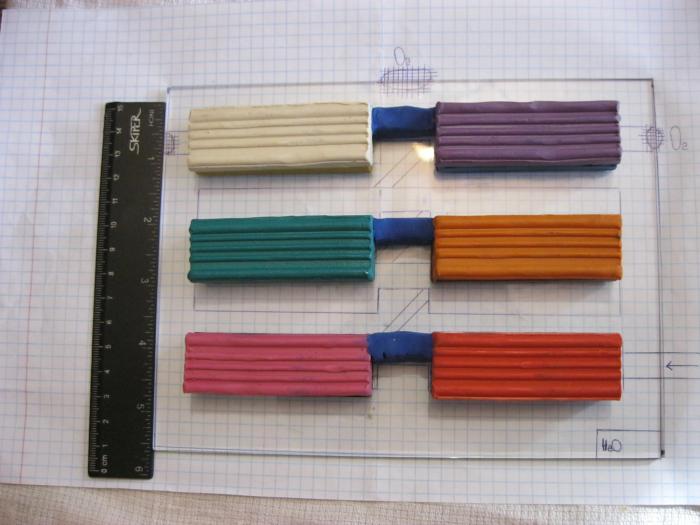 мое наблюдение - пластелин темных тонов (черный, синий, коричневый) гипс красит меньше..