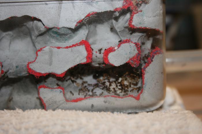 после просмотра фотографий появилась идея выдавать муравьям цветной песок для украшений. если уж всёравно заделывают щели, пусть заделывают красиво, а не мусором :)