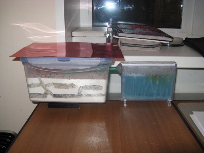 1. Влажная арена, т.к. она на поверхности формика. 2. Плохой градиент влажности, если он вообще был. Половина зерна хранилась в камерах, вторую они складывали в греческий кирпич на арене. 3. Не делал боковых вентиляционных отверстий. *Собирался продержать их так не дольше недели. Муравьи - ребята смышленые, верны делу бывают, чухнули проблему и оперативно прогрызли еще 4 выхода на поверхность из разных камер. Всего камер было 7, просторные. Крышки как таковой не было, почти всю верхнюю поверхность я вырезал, оставив бортики по 1,5 см.