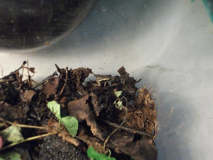Древолазы поют песни и откладывают икру, растут головастики, появились маленькие лягушата.