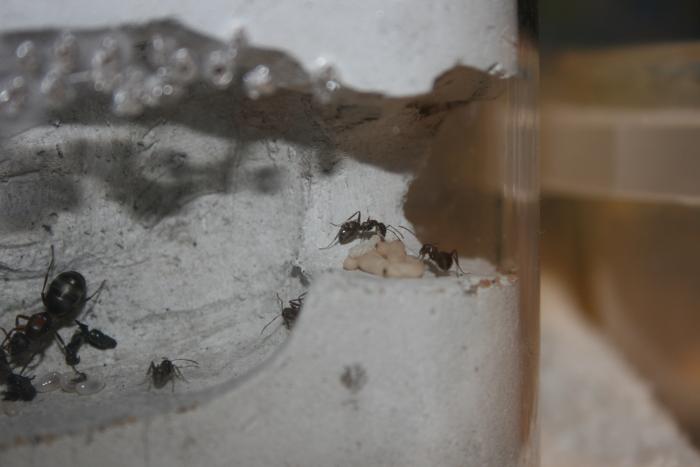 Те фуски, что я отдал Ant and company, жили у меня не в формике, а под ним (под гипсовой частью), в грунте, и им это нравилось. Все ходы в формикарии заложили вермикулитом, мусор выносили наружу, и т.д.. Вообще маленькая семья + большой формик = плесень в камерах формикария и их безумная загаженность. Им реально лучше было бы в пробирке.