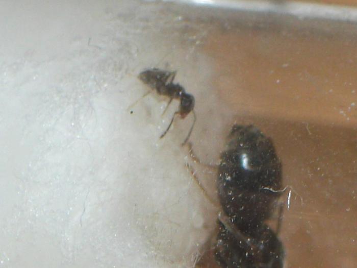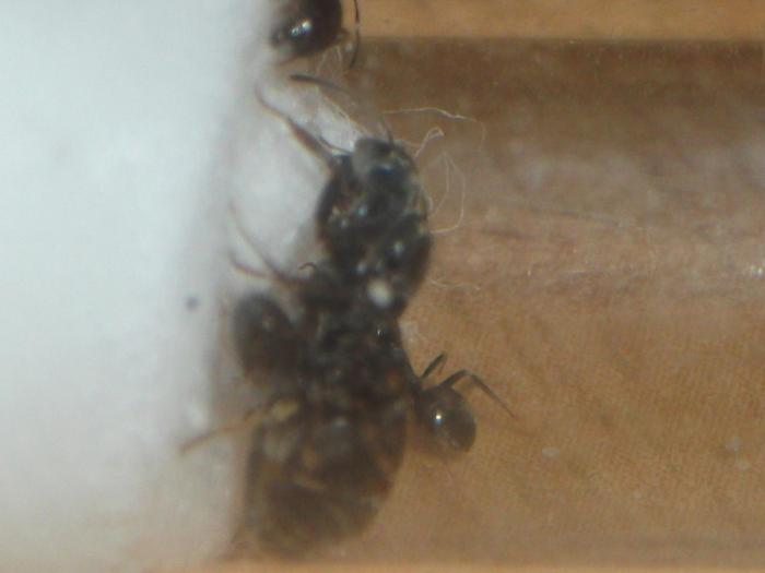 Во первых: в семье, где 2 муравья, еще не появились личинки. Я беспокоюсь, что вдвоем муравьев тяжело, может им подкинуть коконы из других моих семей(ждать лета долго)? Хотя муравьи довольные и матка немного потолстела.