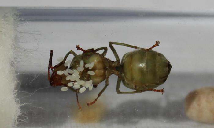 Так же неутешительные новости относительно расплода: он то портится коричневея, то плесневеет и пропадает. Решил не накрывать их больше, пускай будут под дневным светом, надеюсь грибок сократится. Так же мне кажется, несмотря на то что они регулярно откладывают яйца и сбросили крылья, матки не оплодотворенные. За эти месяцы еще не видел чтобы яйца доходили до стадии личинки, или хотя бы что-то похожее на них.