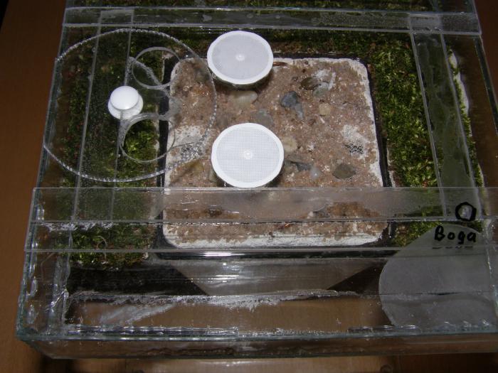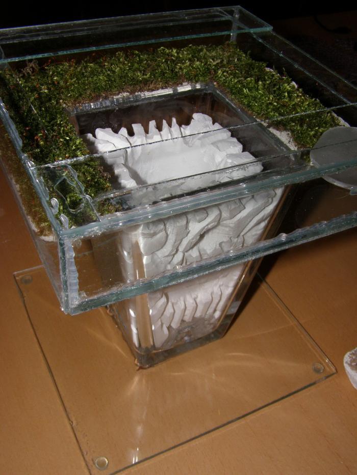 Мох посажен на цементный раствор. Вверху поилка на 2-ва кубика.