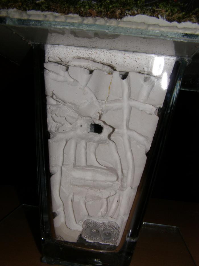 Не понятно для чего будет использоваться отверстие в середине отливки. Обычно его делают для облегчения конструкции и доступ муравьям в него закрыт. А у Вас сделаны ходы туда, матка и все муравьи залезут в него и в формикарии будут ползать лишь еденицы, или в случае перенаселения внутренней камеры. ИМХО гипс нужно переделать.