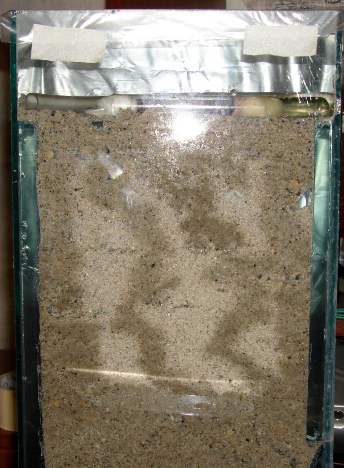 через некоторое время песок на поверхности начал сохнуть, и не увлажнялся снизу,