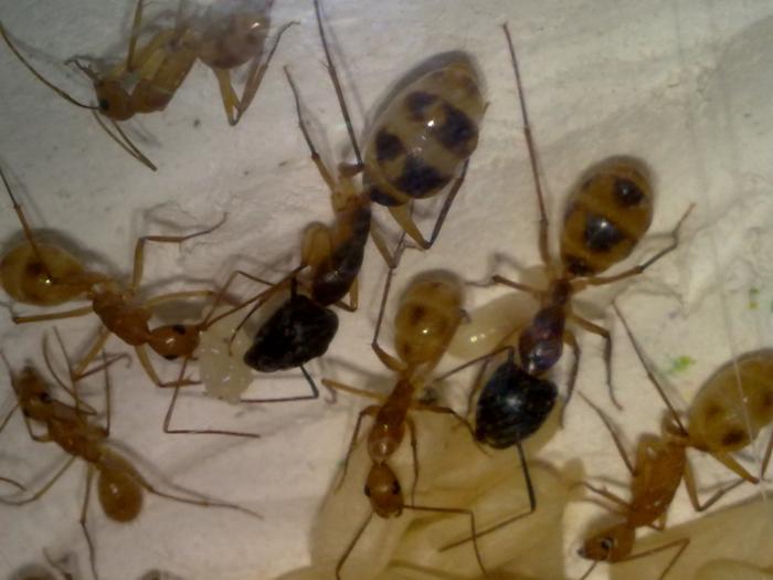Не так давно заметил появление самцов ! Пока их не много около 10-20 штук но думаю будет больше . Жаль, но маточных куколок пока не замечал . Расплода сейчас всегда море яиц, куколок, личинок . Каждый день точно на свет появляются по несколько взрослых муравьев .