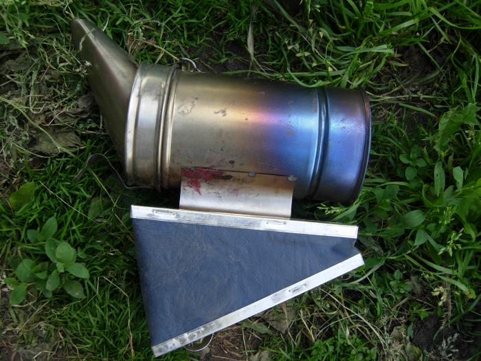И в дымарь надо трухлявую древесину пихать, тогда она за 5 мин не потухнет, и не греется так адски т.к. открытого пламени нет.